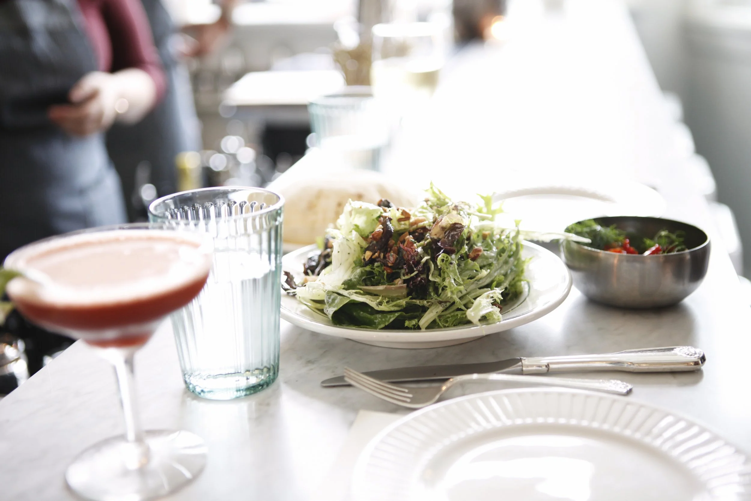 whole petrale sole w/ chicories, pomegranate brown butter, pistachio broth & cilantro